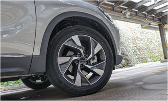 为了使整体看起来更加动感硬朗,轮圈方面也采用了更加犀利运动化的设计,双色19英寸轮圈采用韩泰系列轮胎,规格为235/55 R19。