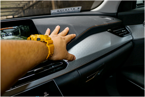 车辆内部的用料在仔细感受后发现虽然没有看上去那么高档,但是也几乎保证了身体所能够触及到的地方采用软质材质包裹,不过细节处理上面还需提高,有些塑料件接触时会发出一定异响。