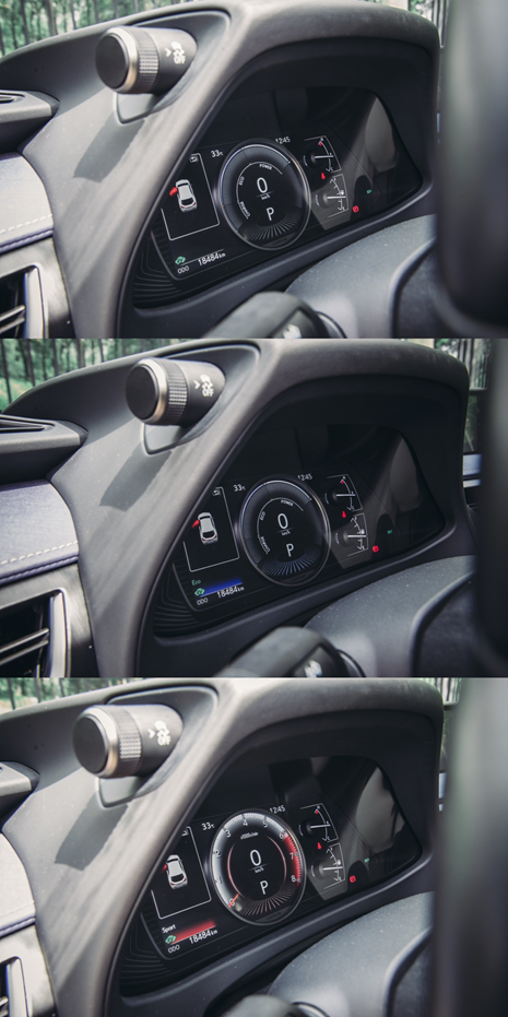 EV纯电模式下,UX 260h好似一台纯电汽车,此时油门感受与燃油车并无差异,动力输出线性柔和,无论是车外还是车内都非常安静。只要电量充足且车速不超过30km/h,你甚至可以一直使用此模式行驶。而Sport模式会比Normal模式表现出更多一层的推背感,但不至于激起发动机的嘶吼,在保证动力需求的前提下又能保障车内人员的舒适性,这点在同级别中非常难得。