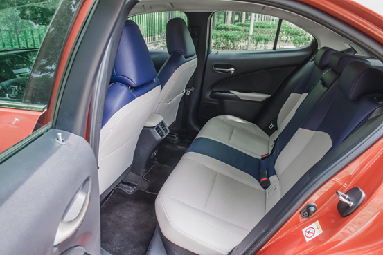 后排空间并不是UX的强向所在,身高178CM的体验者,前排座椅调整到合适的位置,后排腿部空间1拳,头部空间4指。坐四位成年轻人的话,完全没有问题。