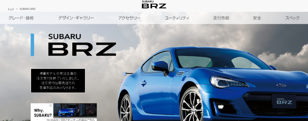 (斯巴鲁日本官网已停止BRZ的预定)