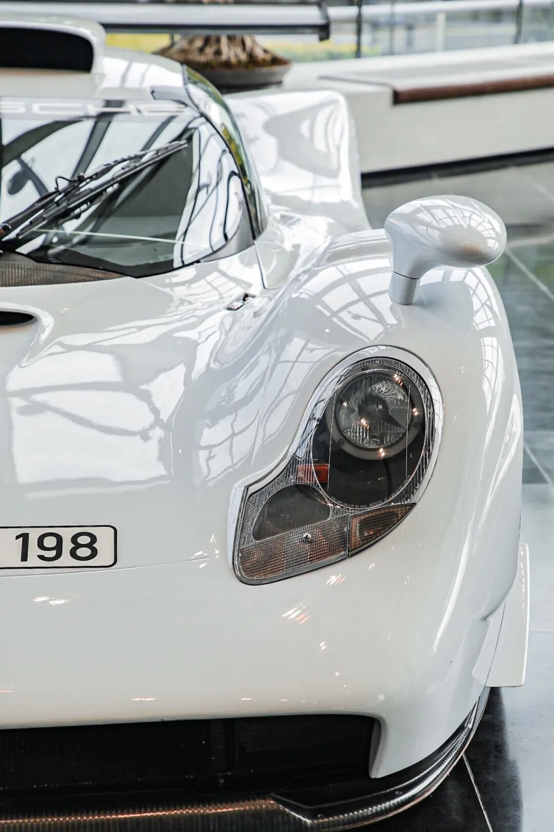 规则相对宽松的GT1组别在创立后迅速发展,不但参赛车型开始越来越接近原型车,参赛车队也从私人车队转向官方。欧美日顶级厂家如保时捷、法拉利、奔驰、捷豹、迈凯伦、莲花、布加迪、雪佛兰、克莱斯勒、本田、日产和丰田等纷纷在勒芒对垒GT1,无论是锋芒还是实力都盖过了组别更高的LMP原型赛车。保时捷在仔细钻研赛事规则后决定,与其改装街车不如重头研发,于是便诞生了911 GT1这样一个怪物。911 GT1的特别,是它一个躯壳中暗藏的两个灵魂,911(993)的基因以及962勒芒原型车的血液,前后车身拼接,并直接塞入了一颗3.2T的中置引擎,为尾部的巨大扩散器留出足够空间。按照1998年规定,GT1组别只需一辆公路版即可认证,保时捷也按照认证要求制造了这款街道版猛兽,直接成为当时的保时捷非官方顶级超跑。911 GT1街车版整车重量仅1220kg,拥有3.2T双涡轮引擎,最大输出400kW功率,10秒内即可从静止加速至200km/h。这个成绩居然与当今保时捷最高科技的纯电动跑车Taycan(参数|询价)不相上下。要说它与911的关系,996上备受争议的荷包蛋型头灯、车门拉手还有那两颗装载赛车上违和感颇高的尾灯可能是为数不多被保留下的设计元素。街车的躯壳——911 GT1街车版符合所有碰撞、排气和噪音相关的法规,加上了巨大的排气尾鼓、相比赛车的坚硬碳纤维稍微舒适些的桶形座椅、三点式安全带、常规的燃油加注口和喇叭等部件。赛车的灵魂——它采用了全碳纤维车身结构,单壳体结构让驾驶者被完全包裹在坚固的碳舱之内,车顶的进气,尾部的巨大GT尾翼以及极致简化的中控旋钮,让它无论哪个角度看去,都与一辆纯正的赛车无异。卸下后部车壳,就能看到那颗暗藏于内心的3.2T引擎以及体积庞大的变速箱。公路版车型也采用了六速序列式变速箱和双摇臂设计,推杆式悬挂虽然在赛车上司空见惯,但是当它以一台街车示人时,总还是让人惊叹。仅此一台的珍惜车型是绝对不会售卖的,它由保时捷博物馆永久保管,进行展出和巡演。未有机会去斯图加特博物馆的我们,却有幸在上海的保时捷大厦一饱眼福。彩 蛋作为量产车,自然与所有上路的车辆一样拥有独一无二的识别号。而这辆911 GT1街道版的VIN码为WP0ZZZ9RZXS10001。如何解读?WP0ZZZ为保时捷制造商代码,9R跳过ZXS接着1,9R1则为GT1的内部代号。字母R代表Razing,而ZXS的X代表年款1999(制造日期为1998年)。最后的一串数字自然就是序列号,也就代表了它是GT1这一车型的首台,也是唯一一台。