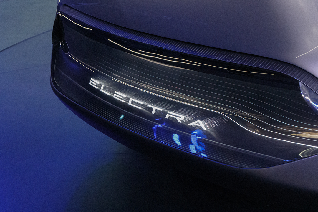 下方的前包围则采用黑色的设计,与车身颜色形成撞色的感觉。内部嵌入多条细小的灯带,并且在最前方还有“Elctra”的发光字,并且还可以与大灯组形成“灯语”交互。