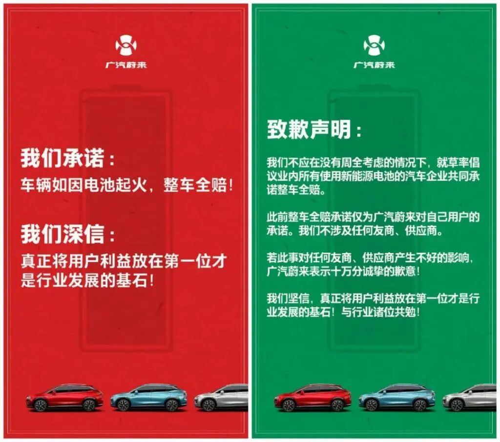 同时,广汽蔚来还公开倡议:“业内所有使用宁德时代电池汽车厂商共同承诺,为用户权益保驾护航!”