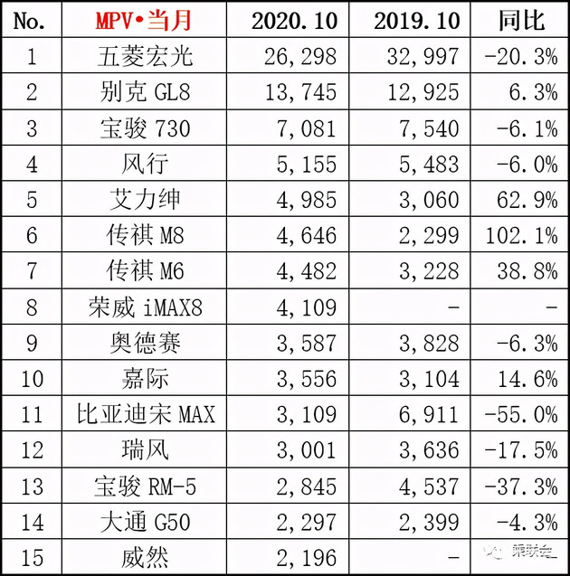 MPV市场榜首五菱宏光(参数|询价)虽然同比出现了20.3%的下降,但其榜首地位依然无法撼动。第二名别克GL8比较尴尬,千年老二的名声可不好听,但确实与榜首的差距比较大,可第三名要想超越也是非常难的,毕竟有将近一倍的差距。