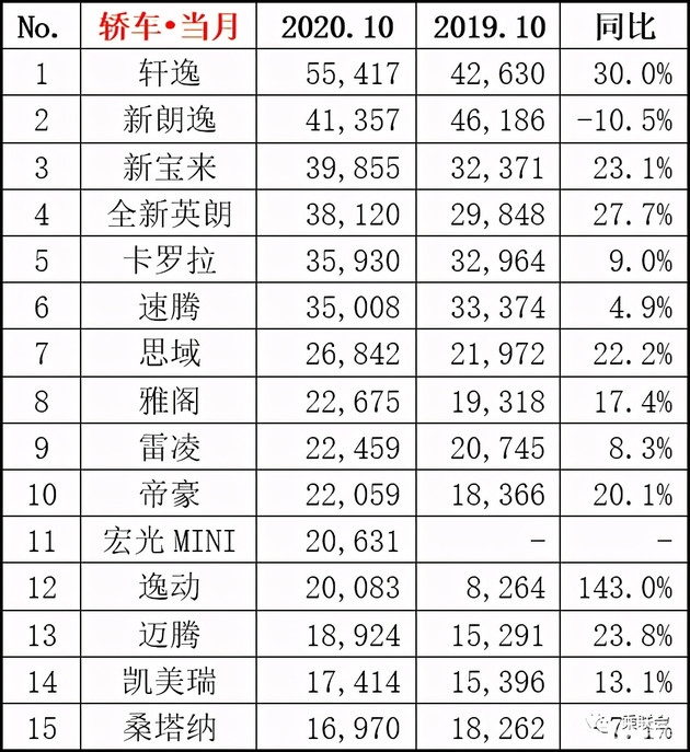 近日,乘联会公布了10月汽车销量。接下来,小编将对轿车、SUV、MPV三个细分市场的前15名进行简析,希望能给想买车的消费者提供一个参考。