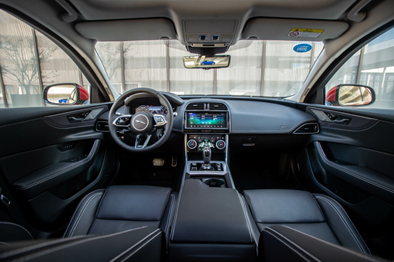 200PS车型使用的是机械仪表+7英寸液晶显示屏,而250PS车型则提供了科技感更强的12.3英寸全液晶仪表。中控屏的尺寸达到了10.2英寸,内置Jaguar Touch Pro Duo信息娱乐系统、CarPlay、导航等功能,操作较为流畅,屏幕的显示效果相当出色。方向盘换挡拨片为运动系列独有,优雅系列则无缘享用。