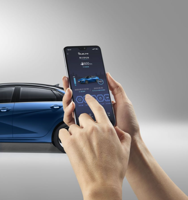 第七代伊兰特还配备有手机BLE蓝牙钥匙和手机BlueLink功能。手机BLE蓝牙钥匙可以通过手机蓝牙与车辆配对连接,实现锁门、开门,甚至可以向他人共享车辆的钥匙,手机BlueLink则可以远程查看车辆状态,随时随地了解车型信息。