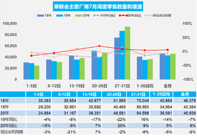 和2019年的同环比双降相比,今年7月车市体现出了较强的市场韧劲,同时,也是疫情之后,政策倾斜叠加终端促销力度较大,而带来的市场回弹。