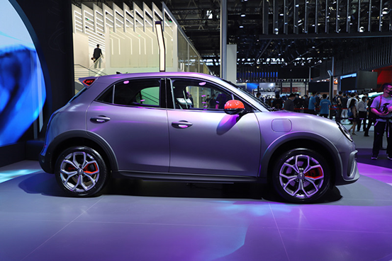 流畅的车侧线条、悬浮式的车顶以及上扰流板的GT标识,为车身侧面造型增添了运动复古的韵味。花瓣样式的轮圈在彰显个性的同时又不缺乏动感,视觉效果十分抢眼。车身尺寸方面,定位于纯电动小型SUV的它,长宽高分别为4235/1825/1596mm,轴距2650mm。