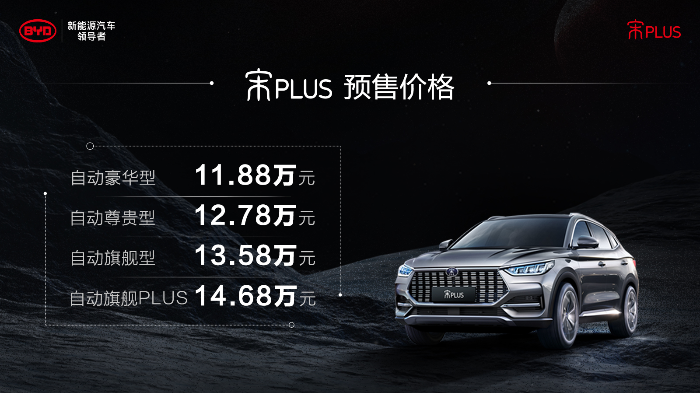 9月3日,比亚迪宋(参数|询价)PLUS全球预售暨河北站正式开启,预售价格区间为11.88万元-14.68万元。作为比亚迪继汉之后的又一款年度重磅车型,宋PLUS在成都车展一经亮相便圈粉无数,备受车市和消费者关注,将满足更多追求品质生活年轻用户的多元需求。