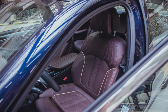 前排的打孔Nappa真皮座椅乘坐起来极为柔软,并且支持18 向电动调节(腿托、腰部支撑、靠背两侧侧翼包裹调节、头枕上下调节、靠背上半部分角度调节)奢华程度令人难以置信。