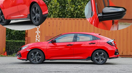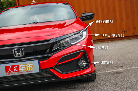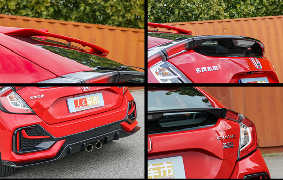 外观部分车辆的变化可以说是一眼可见,简单地说就是通过多处运用黑色装饰让整体更加运动化。车头细节方面,两侧雾灯的装饰板面积更大,饰条更加粗犷、车头还增加了前铲,并且上下进气格栅镂空式设计,这些都显得两厢版思域从外观上直观地看上去更加战斗。