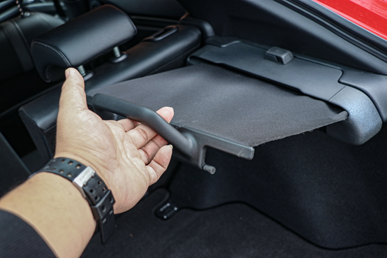 后备厢方面作为两厢掀背车型在储物便利程度上多多少少要比三厢版来的更加出色,对于放置一些稍大稍高的如婴儿车等物品的时候,会显得更加自如。而后备厢内的横向遮物板设计是一处彰显本田MM理念的设计,相比于传统的纵深置遮物板,横置遮物板减少了侵占后备厢的空间,同时也能够起到不错的遮物效果,是我本人十分欣赏的这辆两厢版思域之处。