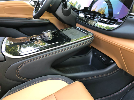 中控台采用分段式处理,横置部分很有奔驰的感觉,尤其是那双12.3英寸大联屏。独立出来的竖置悬浮台,很有林肯领航员(参数|询价)第二排座椅间扶手台的感觉,大气十足中透露着高级感。