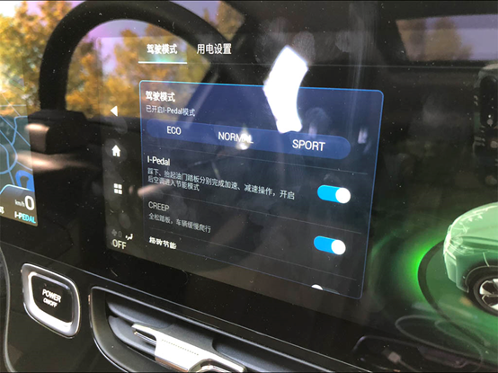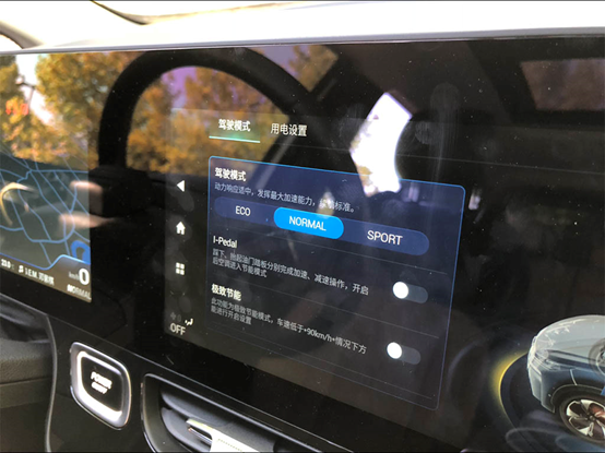 动能回收只有开和关,没有挡位可调。在这辆车上这应该叫I-Pedal,启用后是普通电动车最强一挡动能回收的感觉,同样拖拽感也是最强的。