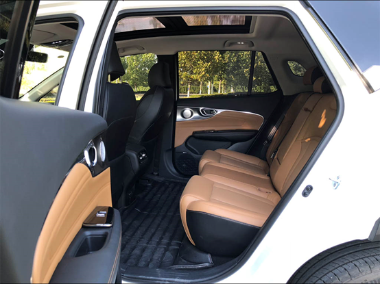 第二排座椅空间真的非常大,和UR-V(参数|询价)、冠道(参数|询价)这样的车后排空间类似,地台也是纯平的,我将近一米九的身高、以及190斤的体重,坐在后边真的是很舒适的乘坐状态,包括头部空间也非常充裕。很难相信它定位于紧凑型SUV,空间优势完全赶超中型SUV、甚至比拟中大型SUV后排空间也不过分。