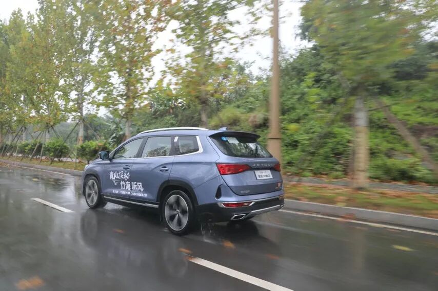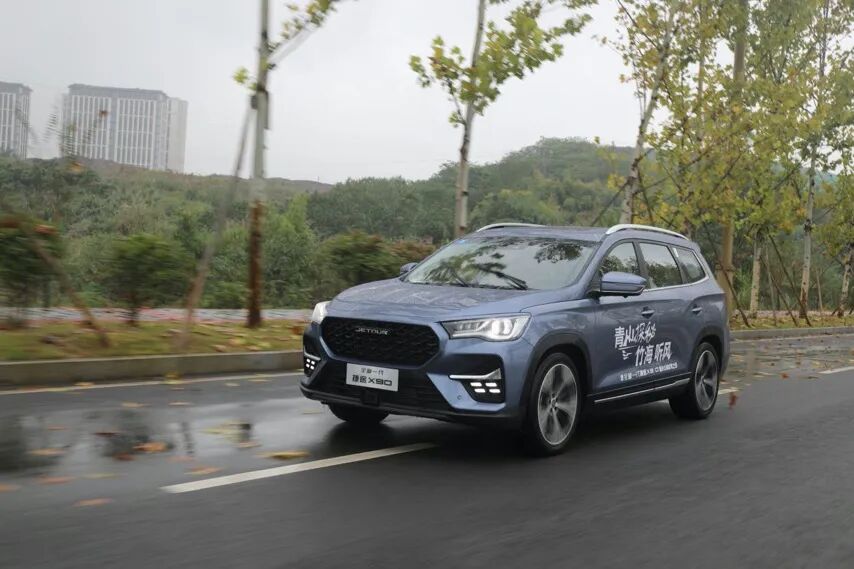 而本次在山城重庆,围绕着“青山探秘,竹海听风”解密了捷途X90身上的重重疑惑,同时也让我对于这个品牌有了全新的认识。中型SUV里的大块头首先第一眼看到这车时,给人的感觉还是比较温文尔雅,一副非常典型的城市SUV“暖男”形象。前脸部分大尺寸中网内部采用菱形图案,颇有一些运动氛围,同时这台车搭载的LED大灯为智能自适应大灯,简单来说就是能够根据当下环境以及对向来车自动调节远近光灯,没想到这个价位就能给到这么高级的配置。捷途X90的三围分别是4840/1925/1780mm,轴距达到了2850mm,而轮毂的尺寸也达到了20英寸。这个车身尺寸并不小,在中型SUV里面已经算是大块头选手了,但是实车看过去的感觉并不会显得很大,我想是与它巧妙的线条运用有着密切的关系。尾部的设计相对于前脸来说显得更为简洁,采用了双边共两出的排气,同时在细节之处运用了众多的镀铬装饰亮条提升视觉感受。内饰质感不错,配置丰富最近这几年,自主品牌在内饰的档次和科技感营造方面有了大幅度的提升。在新款捷途X90上面,我认为这种质感的提升更加明显。首先映入眼帘的双12.3英寸的液晶大屏幕带来的科技感非常浓厚,其次在显示效果以及功能性方面也让人满意。美中不足的是,遇到强光的情况下,屏幕反光还是较为严重,虽然这也并不是什么大问题。在中控面板以及平时能经常接触到的地方,它则是使用了黑色的真皮材质与钢琴烤漆的面板搭配,在质感以及视觉感受上面确实有着媲美合资品牌二三十万车型的实力。多功能方向盘采用了类似奔驰C级(参数|询价)的造型,并且两侧的按键高度一致。如果挡住中央的车标,你很可能会认为它是奔驰C级。而在中控下方的空调控制区域,除了最低配车型之外,其他车型均搭载了9.7英寸的液晶触摸屏,并且保留了温度和风量的调节旋钮,触摸屏+物理旋钮的组合值得点赞。影院级SUV,主要得够其实捷途X90早在上市之初,就以“影院级大SUV”的噱头向同级细分市场发起进攻,当然这个噱头并不是空穴来风,拥有5/6/7座的座椅布局就知道,它是真的很能装。调节好前排座椅之后,后排空间表现有着越级的水准。同时全平的地板对于中间乘客的舒适性提升非常明显。除此之外,六座版本中间的两个座椅前后调节的范围也比较大,在后排不坐人的情况下,将第二排调节至最靠后的位置,再配合面积较大的全景天窗,乘坐起来相当惬意。六座版本的捷途X90第三排的两个座椅并不是摆设,如果第二排乘客通融一下,身高一米八、体重62公斤的人坐进第三排,除了感觉坐垫高度比较低之外,并没有任何不适。不过,当三排座椅都满员的情况之下,后备箱的空间确实就很小了。当然,这不能算是捷途X90的毛病,其实所有三排座的中型甚至中大型SUV都有这个尴尬。况且,以捷途X90这个价位,配置还如此之高,我觉得真的不能要求太多了。所以,在绝大多数第三排不坐人的时候,不如放倒第三排座椅,这样得到的后备箱空间还是不错的。动力够用,底盘紧致