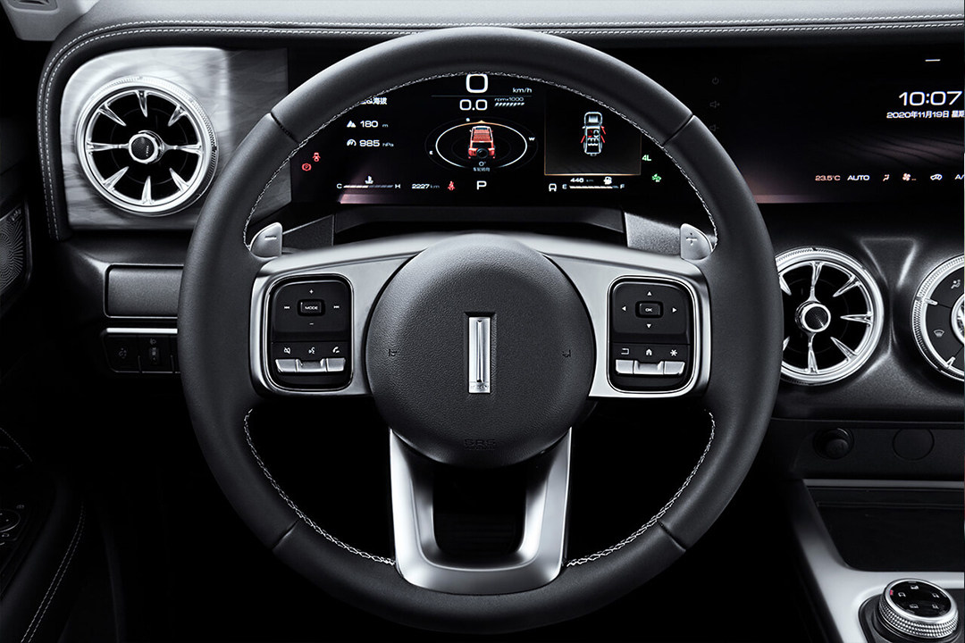 坦克300作为一台硬派越野车,虽然也继承了很多早期越野车的粗犷,但无论车内还是车外,原创性随处可见:车身平直的线条,前脸横幅格栅和圆形大灯,给人极强的硬汉气质;车内虽然保留了一些机械元素,但同时通过双液晶屏幕和舵式换挡杆,大大提升车内的豪华感和科技感,毕竟顶配价格达到21.38万,这些成本不能省。