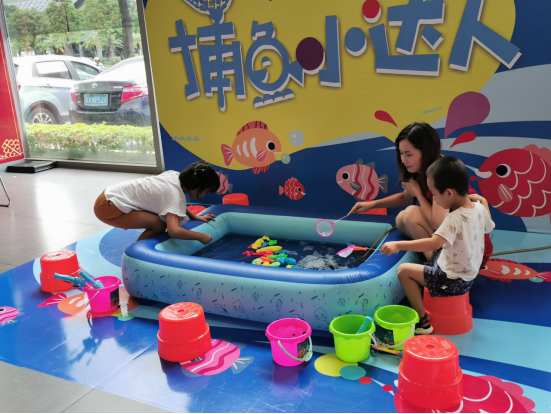 活动现场准备了精美礼品赠送,并邀请了佛山网红歌手助力,在看精彩的表演的同时当然要有美食相伴,比如西点冷餐和饮品都是自助的。在兼顾有小朋友的情况下主办方还安排了儿童游玩区--捕鱼小达人。