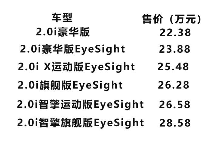 2021款森林人提供6种配置车型,售价在22.38-28.58万元之间,详情如下:
