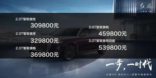 8月23日,万众瞩目的红旗H9终于上市了,共推出五款车型,价格区间为30.98万元--53.98万元。其中,红旗H9 2.0T智联旗悦版售价为30.98万元,2.0T智联旗享版售价为32.98万元,2.0T智联旗畅版售价为36.98万元,3.0T智联旗畅版售价为45.98万元,3.0T智联旗领四座版售价为53.98万元。