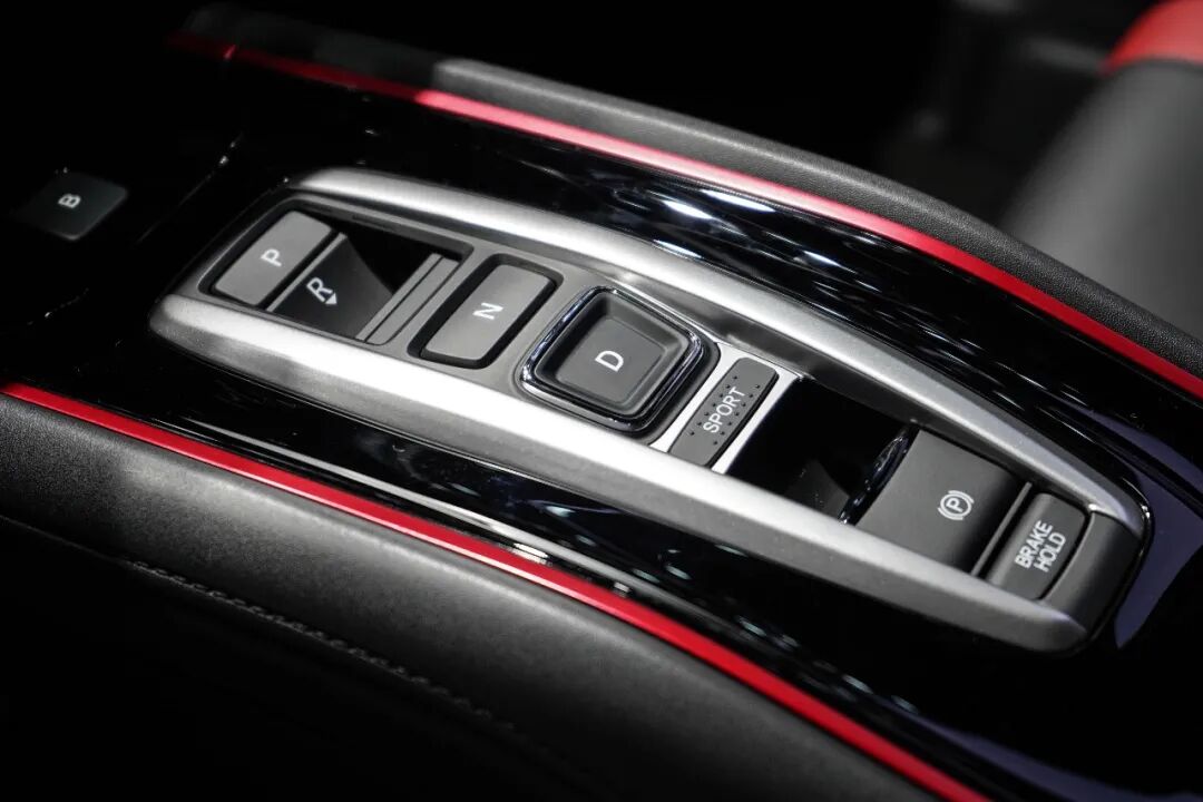 我们能够看到,车内也与车身一样采用了红黑搭配,小面积高亮的红色配色确实挺吸引眼球,包括中控台出风口,换挡区域,车门缝线以及座椅都有不同程度的应用。