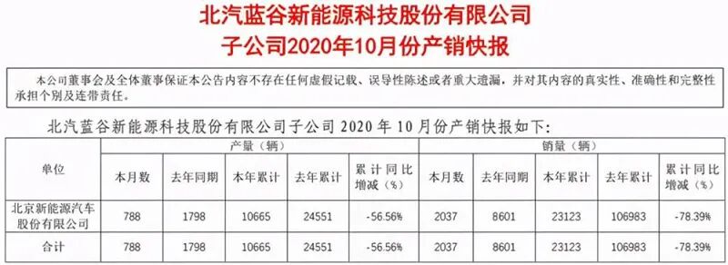 但是好景不长,随着市场的逐渐成熟以及补贴退坡等因素,北汽新能源的销量开始“过山车”式的下滑,其中最让北汽新能源最为头疼的事情就是北汽新能源并没有一个完善的技术优势和平台优势,因为在纯电动车的研发过程中,三电技术尤为重要。尤其是动力电池和电动机两大核心部件,如果不够严谨,那其产品的质量和自燃也就成为了车型的日后的诟病。而新能源行业发展之快,不论是丰田、宝马等巨头车企,还是比亚迪、吉利等自主品牌,都在打造自己的纯电平台,并且研发属于自己的电池包技术,而北汽新能源仍旧停留在“油改电”阶段,其事故频发的EU5,实际上就是基于被淘汰的北汽绅宝D50(参数|询价)燃油车改造的。这也足以证明北汽新能源所掌握的技术完全不能支撑,所以也就不具备过硬的产品质量。1-10月份同比下降56.56%可以看到,没有足够扎实的技术支撑,也没有过硬的产品质量,更没有完善的售后服务,导致北汽新能源的销量也是“一降到底”。数据显示今年10月,国内新能源汽车产销分别完成16.7万辆和16万辆,同比分别增长69.7%和104.5%。如此增长的市场并没有带动北汽新能源的销量。